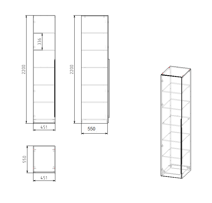 Узкий, но высокий и глубокий конструктив делает пенал функциональным даже в самых компактных пространствах.
