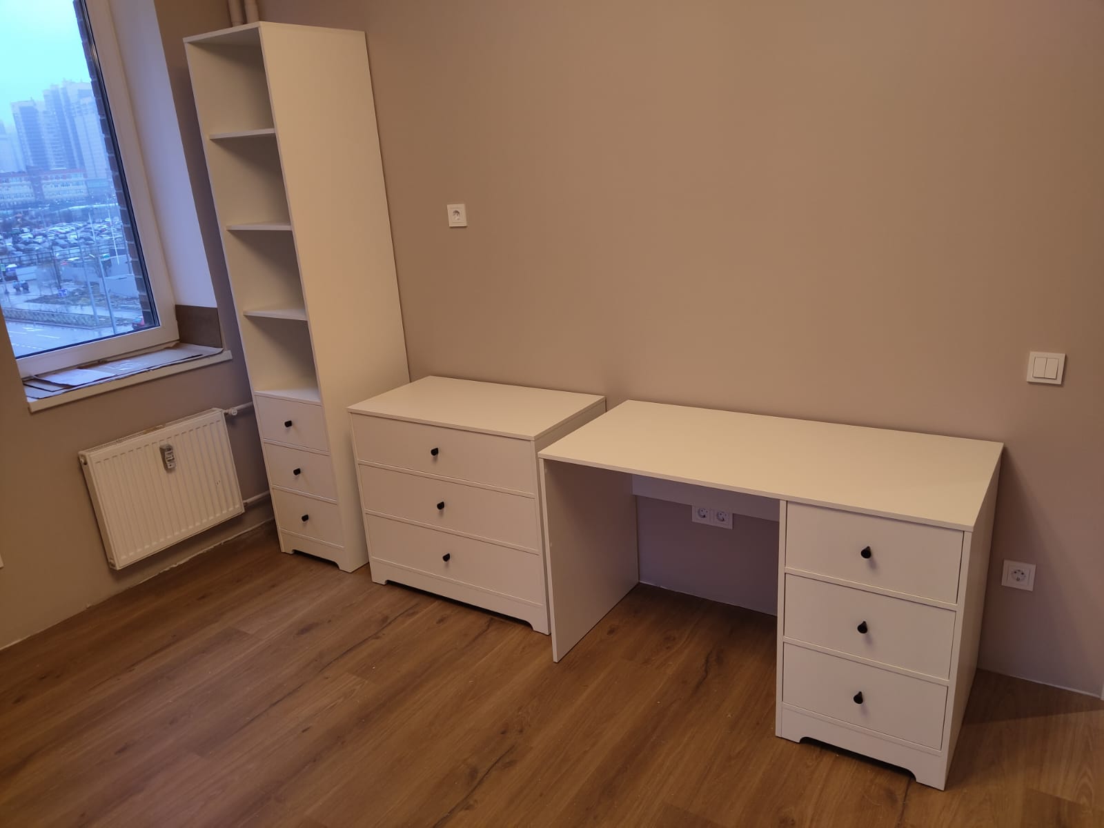ЛДСП Е0,5. Толщина 16 мм. Цвет белый. Лицевые детали обработаны немецкой кромкой Rehau ПВХ 1 мм.