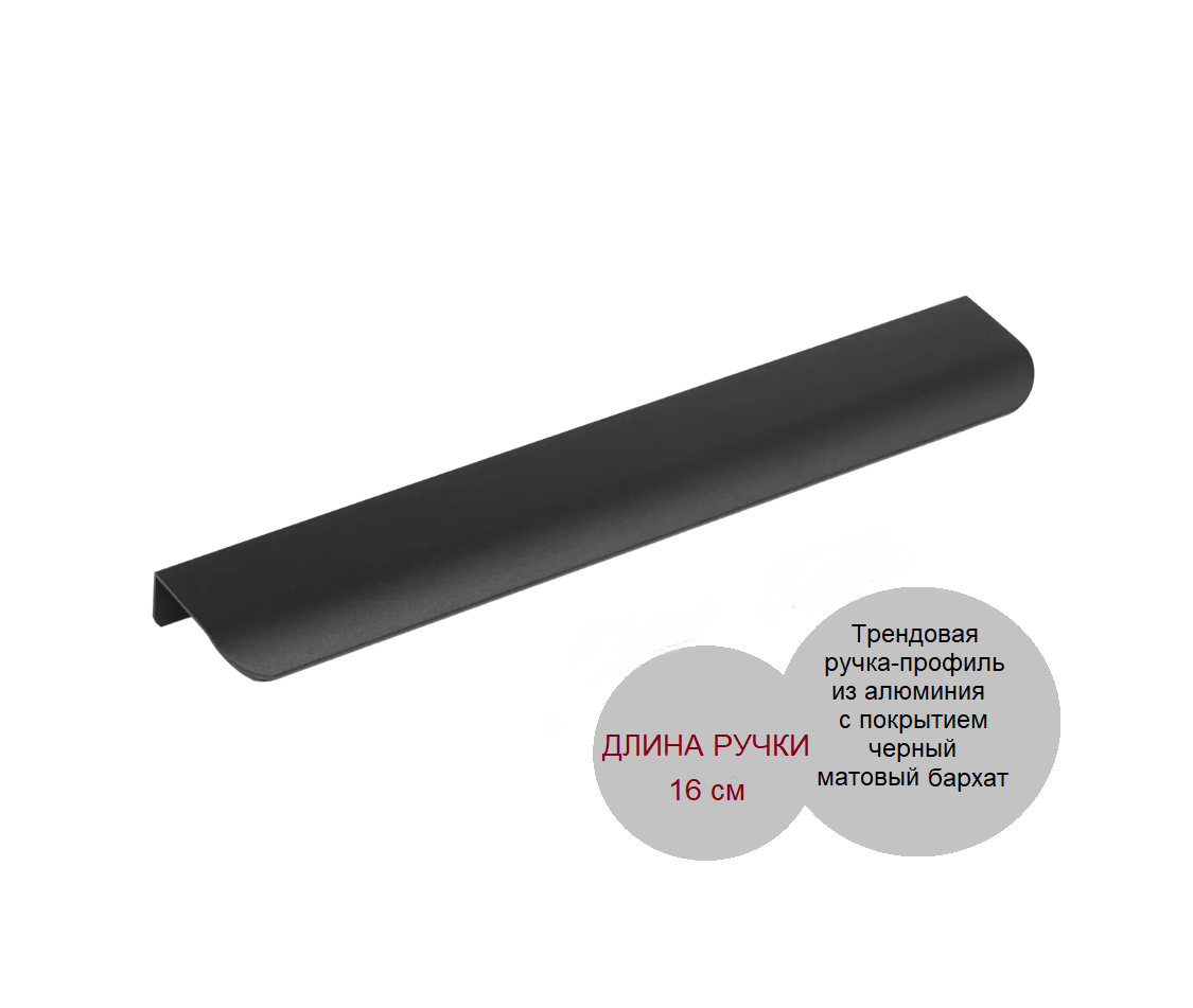 Трендовые ручки-профиль из алюминия с отделкой черный матовый бархат. Длина ручки 16 см.