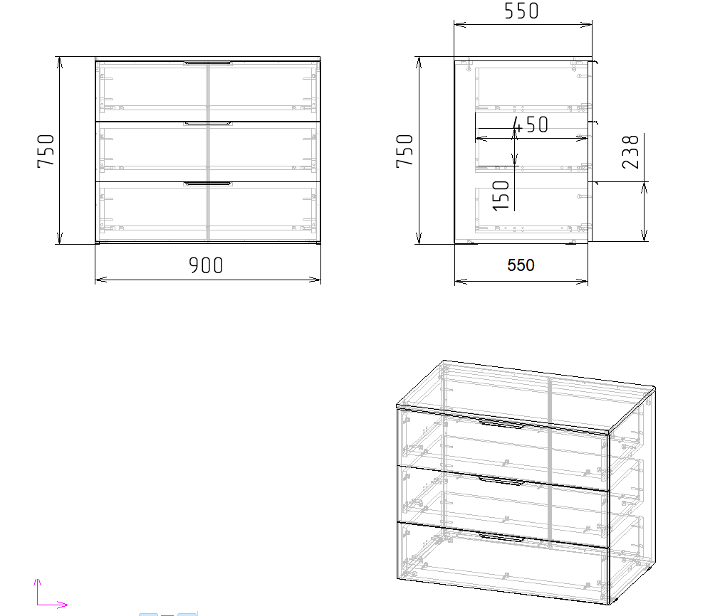 Габариты комода: ширина 900 х высота 750 х глубина 550 мм