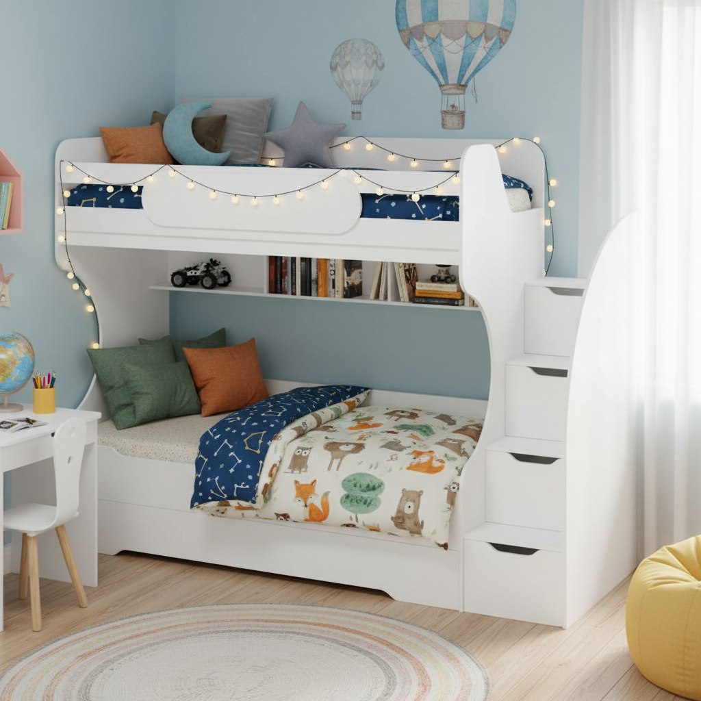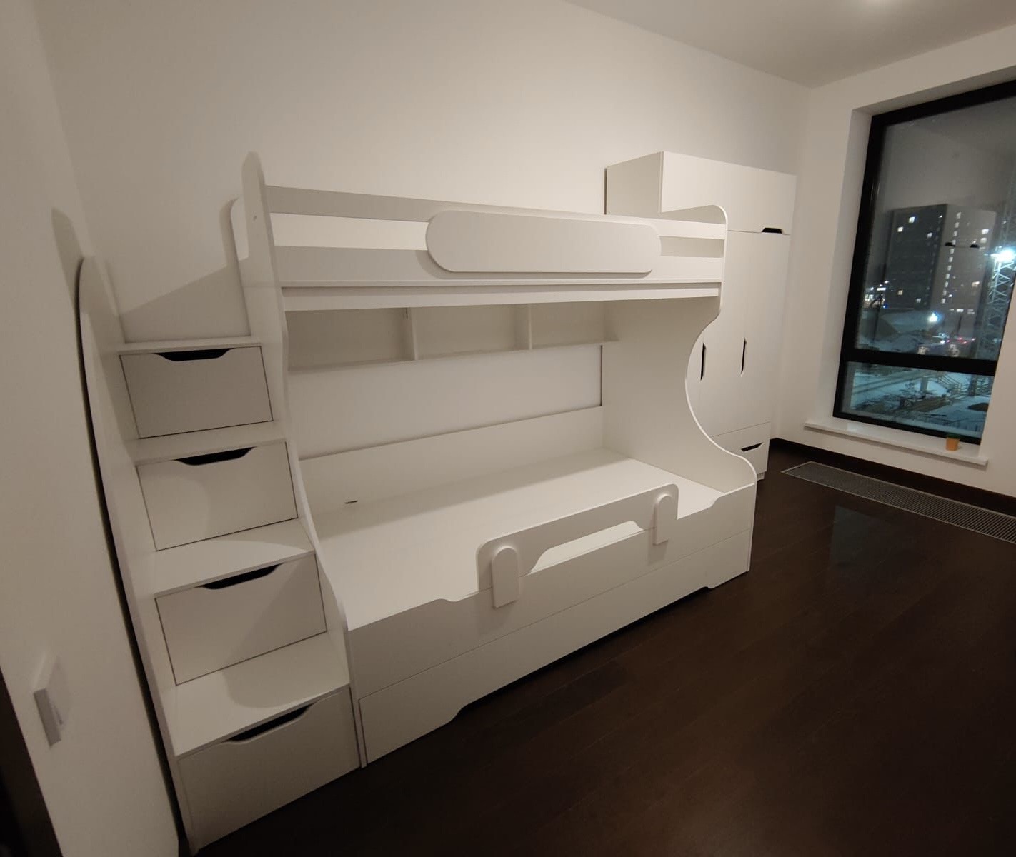 Вместо них - цельный и прочный настил из ЛДСП, который выдерживает сверхвысокую нагрузку и позволяет расположиться даже взрослому с ребенком.
