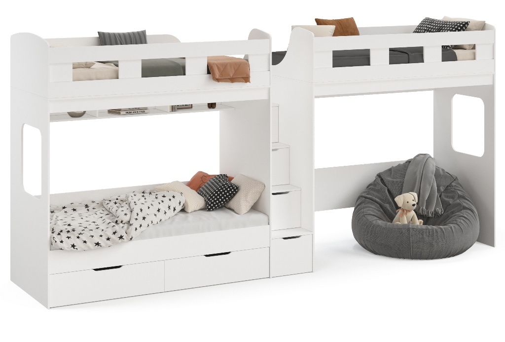 Высокая нагрузка на спальные места. Удобная лестница-комод. Высокие, безопасные бортики