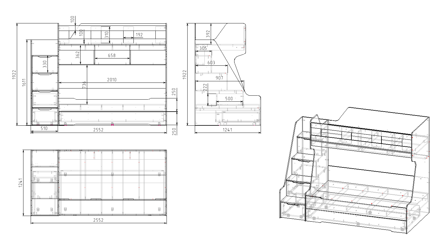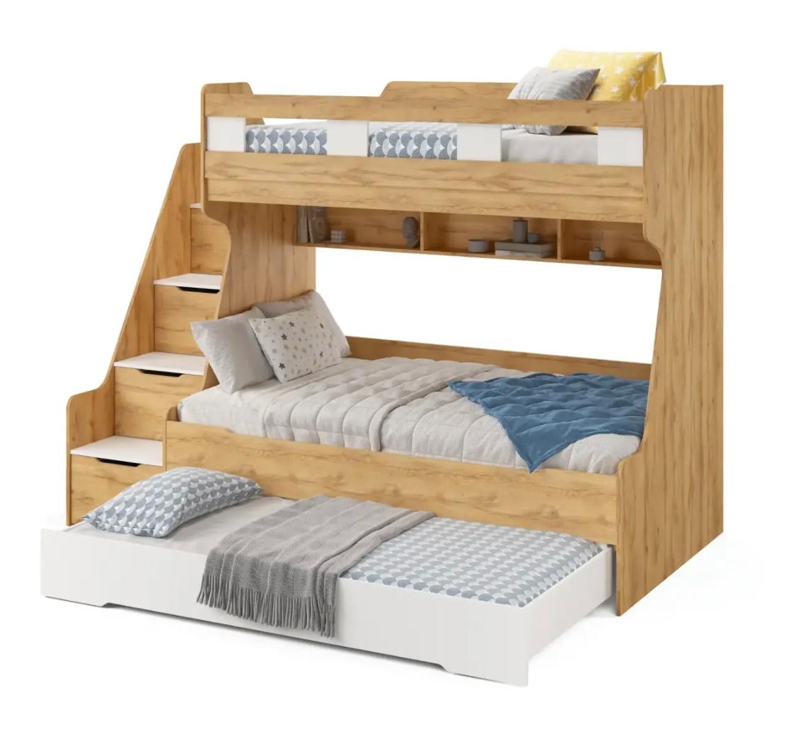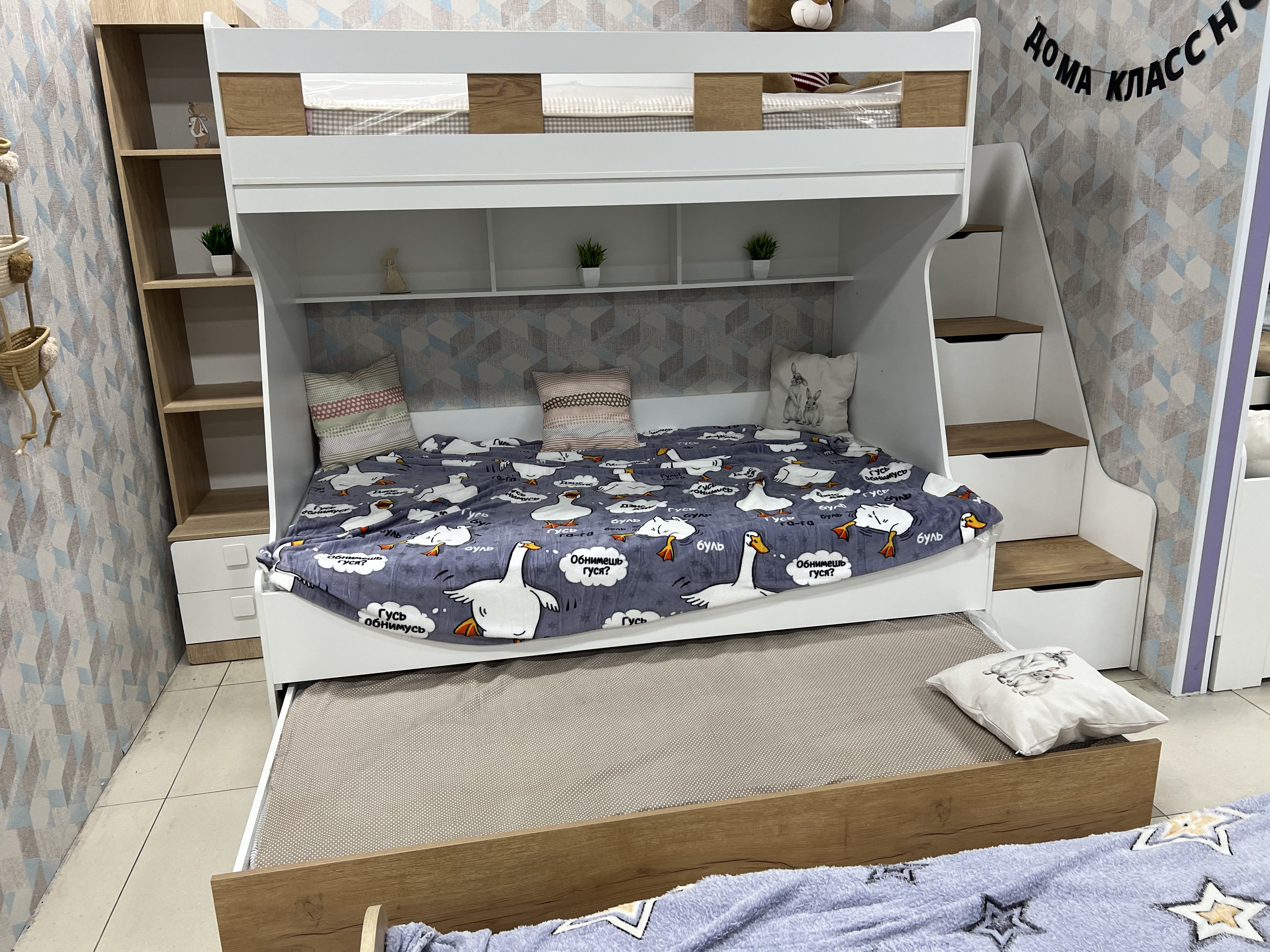 - Максимальная функциональность - два яруса обеспечивают удобство и экономию пространства, а дополнительное спальное место легко выдвигается, когда это необходимо.