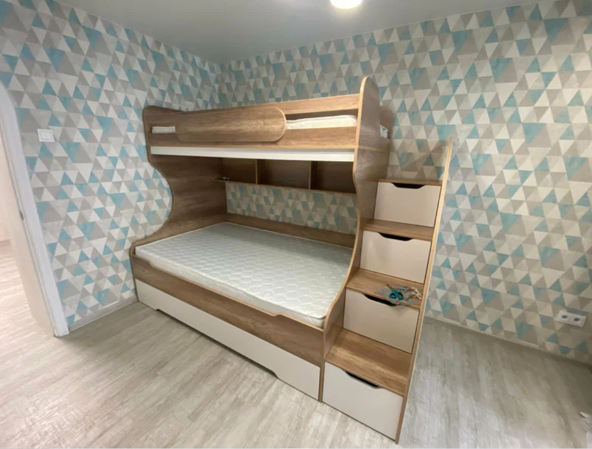 Увеличенное, просторное нижнее спальное место позволяет комфортно разместиться ребенку вместе со взрослым.
