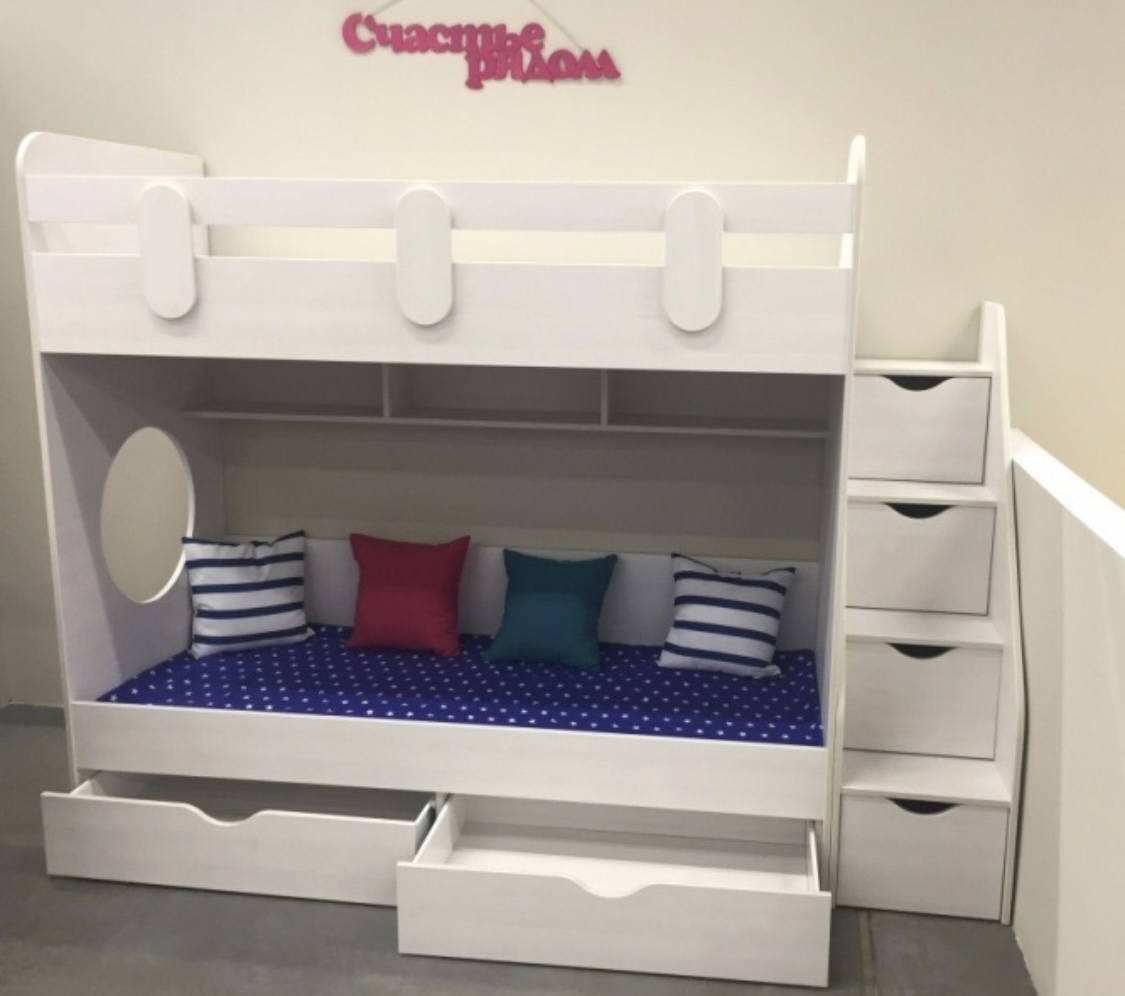 Высокая нагрузка на спальные места. Дно всех выдвижных ящиков прочное - выполнено из ЛДСП 16 мм (не ДВП!) |