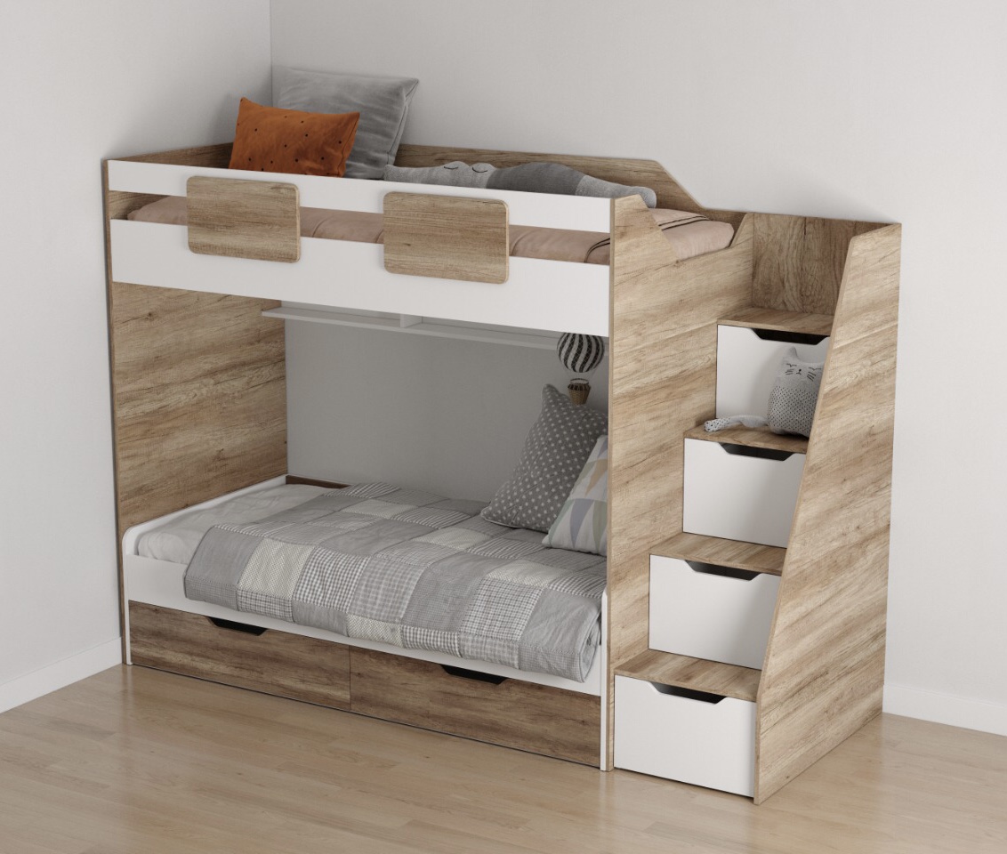 Высокая нагрузка на спальные места. Высокий, безопасный борт. Прочные ящики!