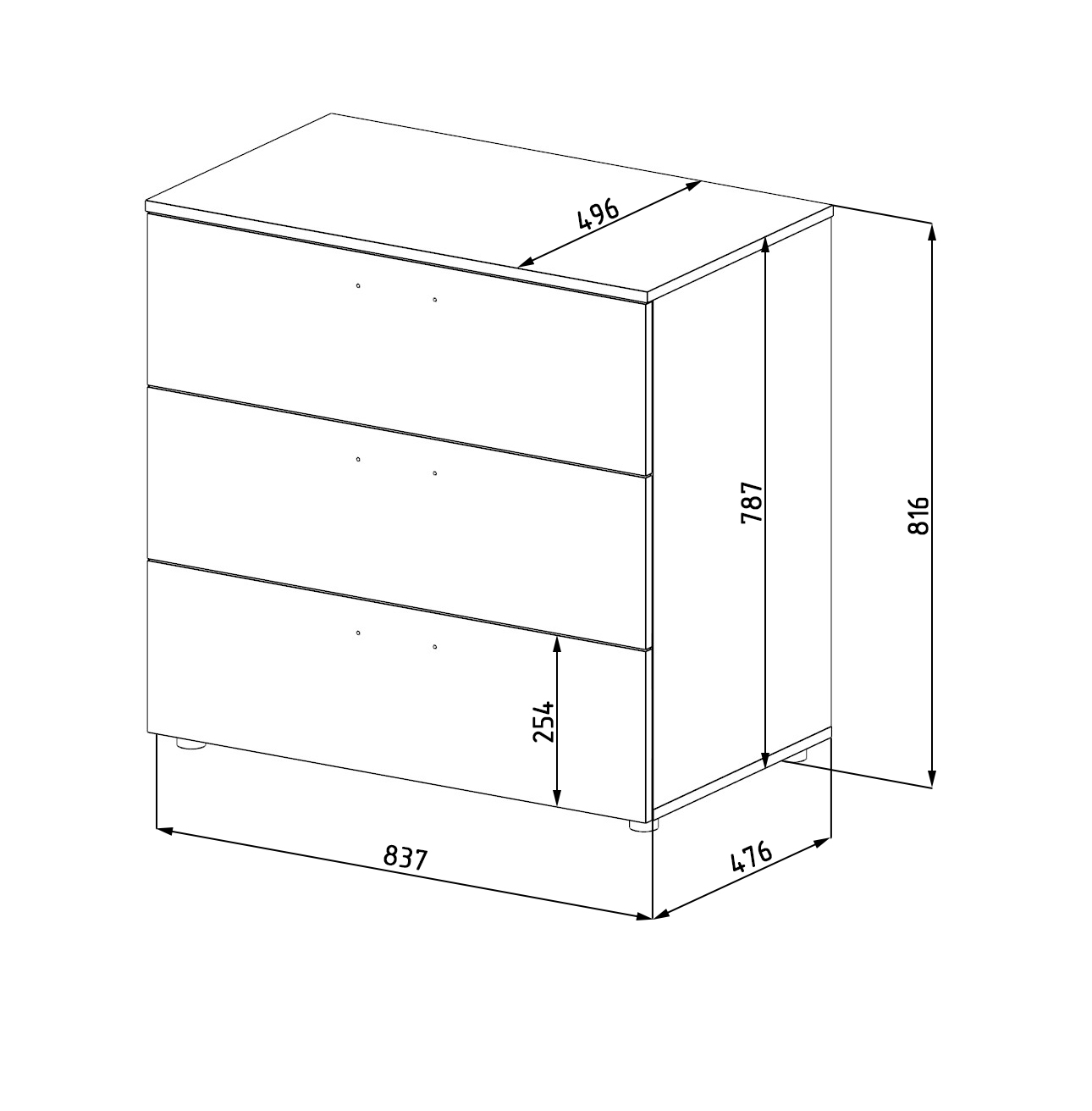 Габариты комода: 842х500х814 (ширина, глубина, высота)