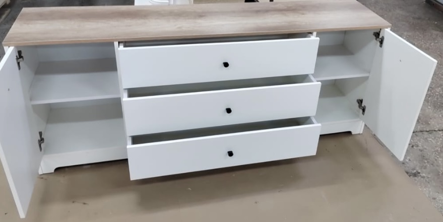 ЛДСП Е0,5. Толщина 16 мм. Цвет: дуб каньон+белый. Лицевые детали обработаны немецкой кромкой Rehau ПВХ 1 мм.