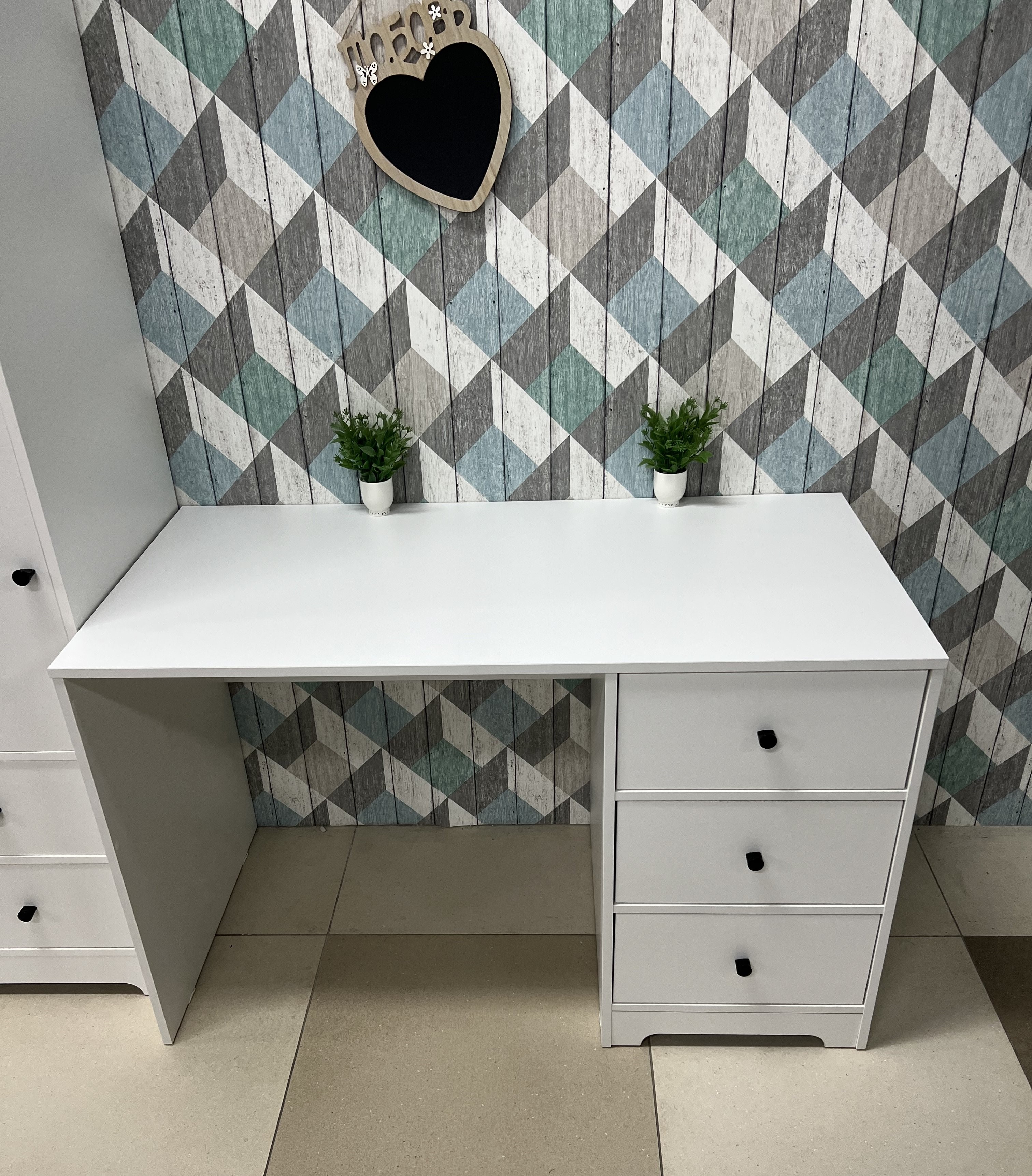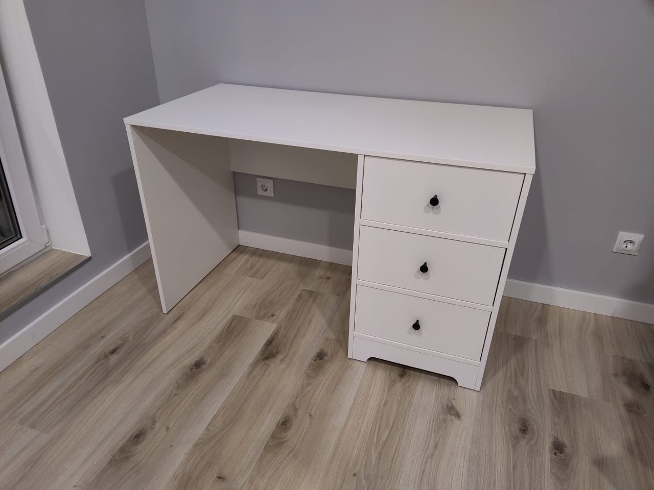 * В стол встроены три выдвижных ящика на направляющих скрытого монтажа с ДОВОДЧИКАМИ.