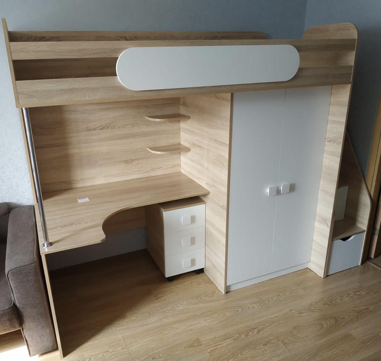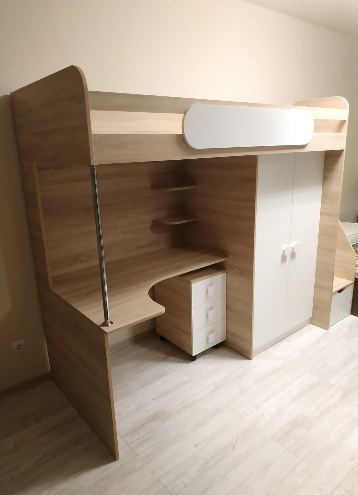Материал и цвет: сертифицированное, качественное, экологически чистое ЛДСП Е0,5 в цветах дуб сонома + белый.