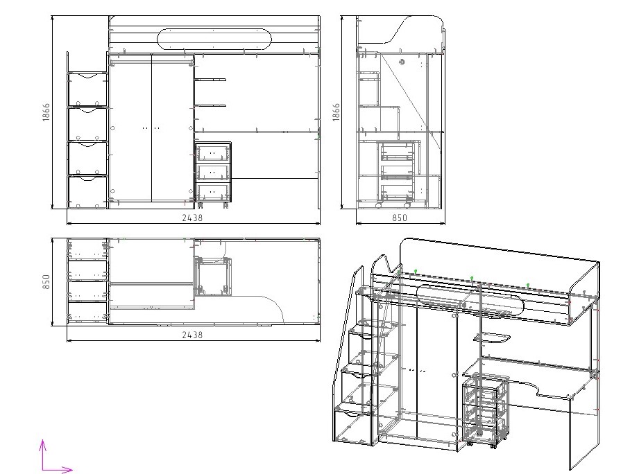 Габариты: глубина 850 х высота 1866 х ширина с лестницей 2438 мм