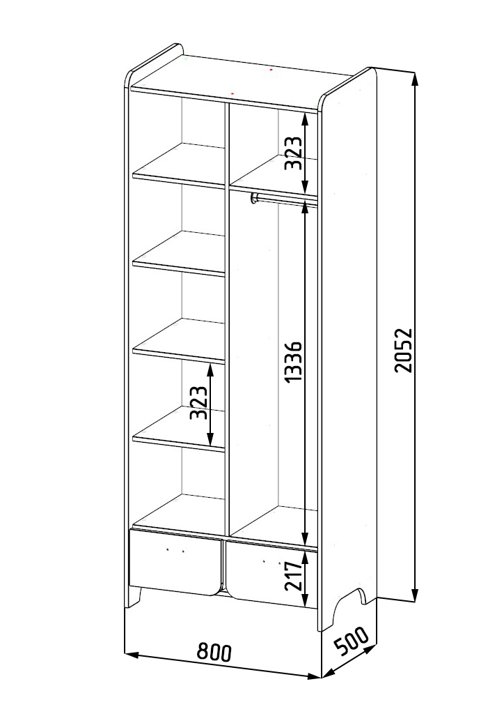 Габариты: ширина 800, глубина 500, высота 2060 мм