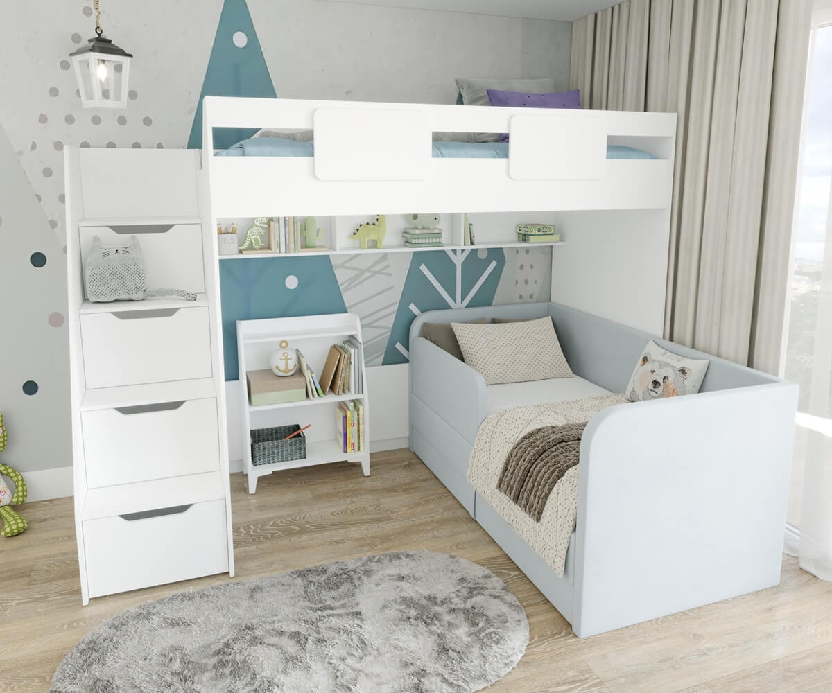 кровать-чердак Мозаика-2 + мягкая кровать Непос + стеллаж детский Уют-5