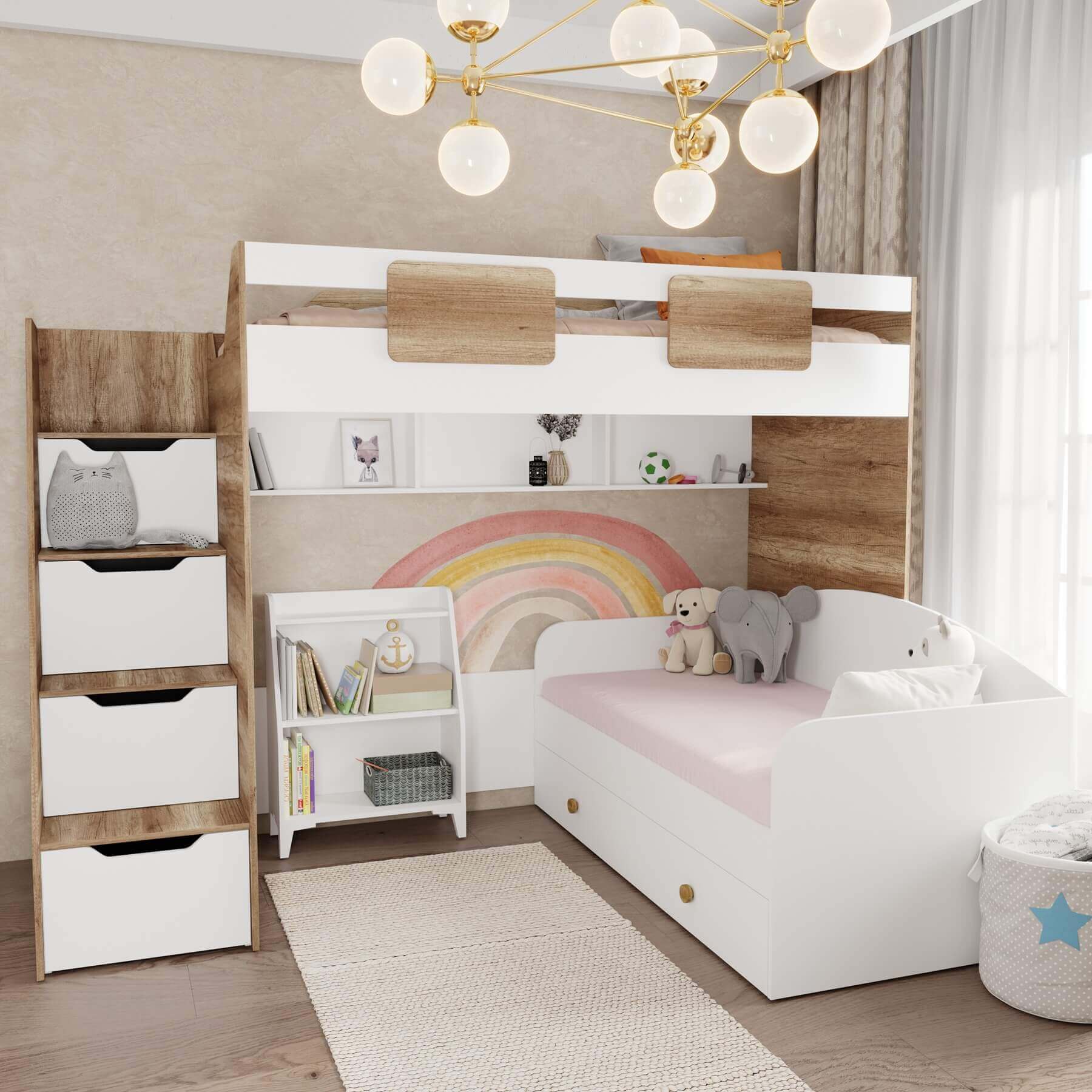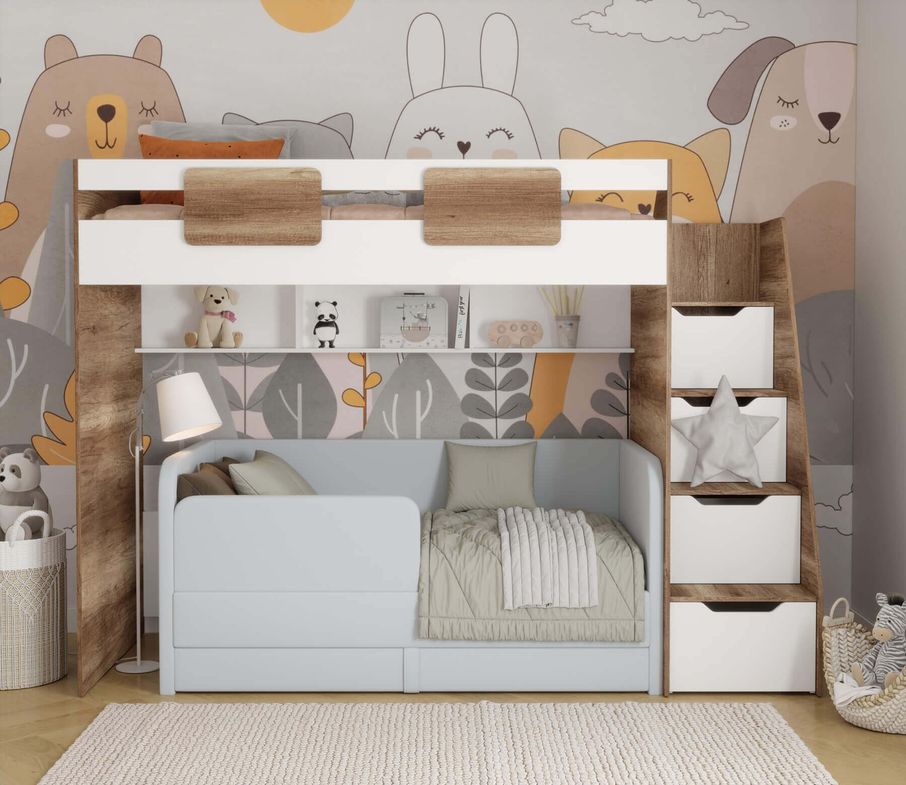 Вместо них - цельный и прочный настил из ЛДСП, который выдерживает сверхвысокую нагрузку и позволяет расположиться даже взрослому с ребенком.