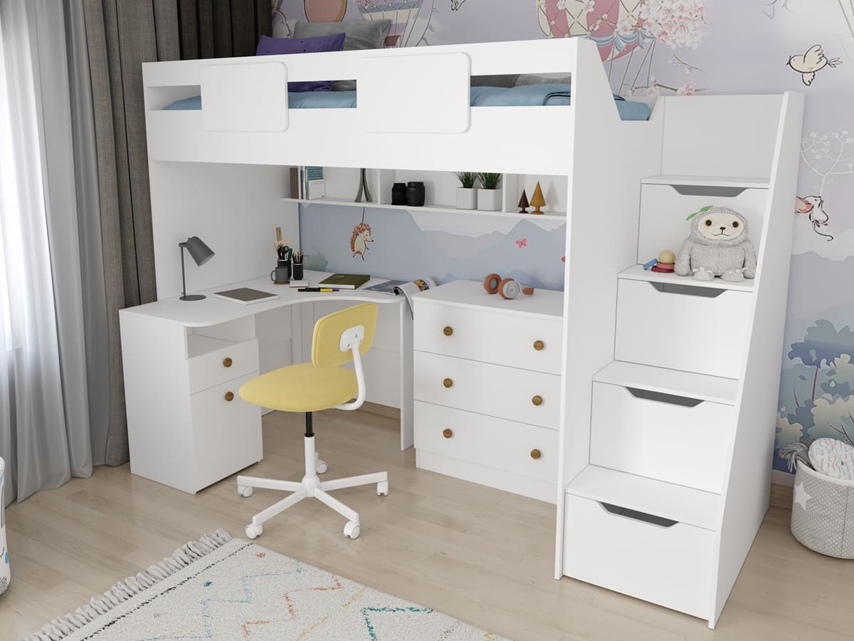 Мебель выполнена из сертифицированного, качественного, экологически чистого ЛДСП класса Е0,5 в белом цвете.