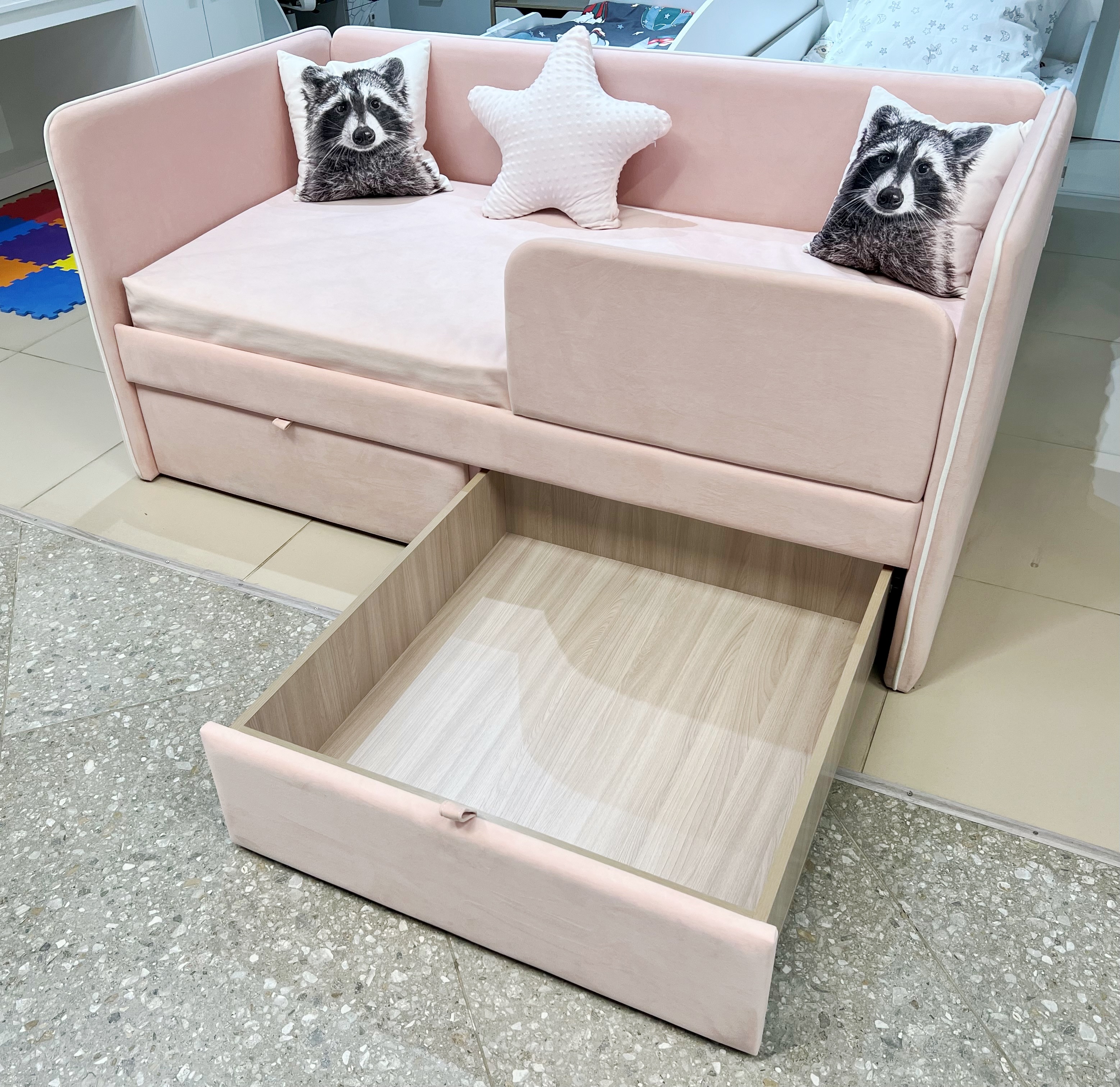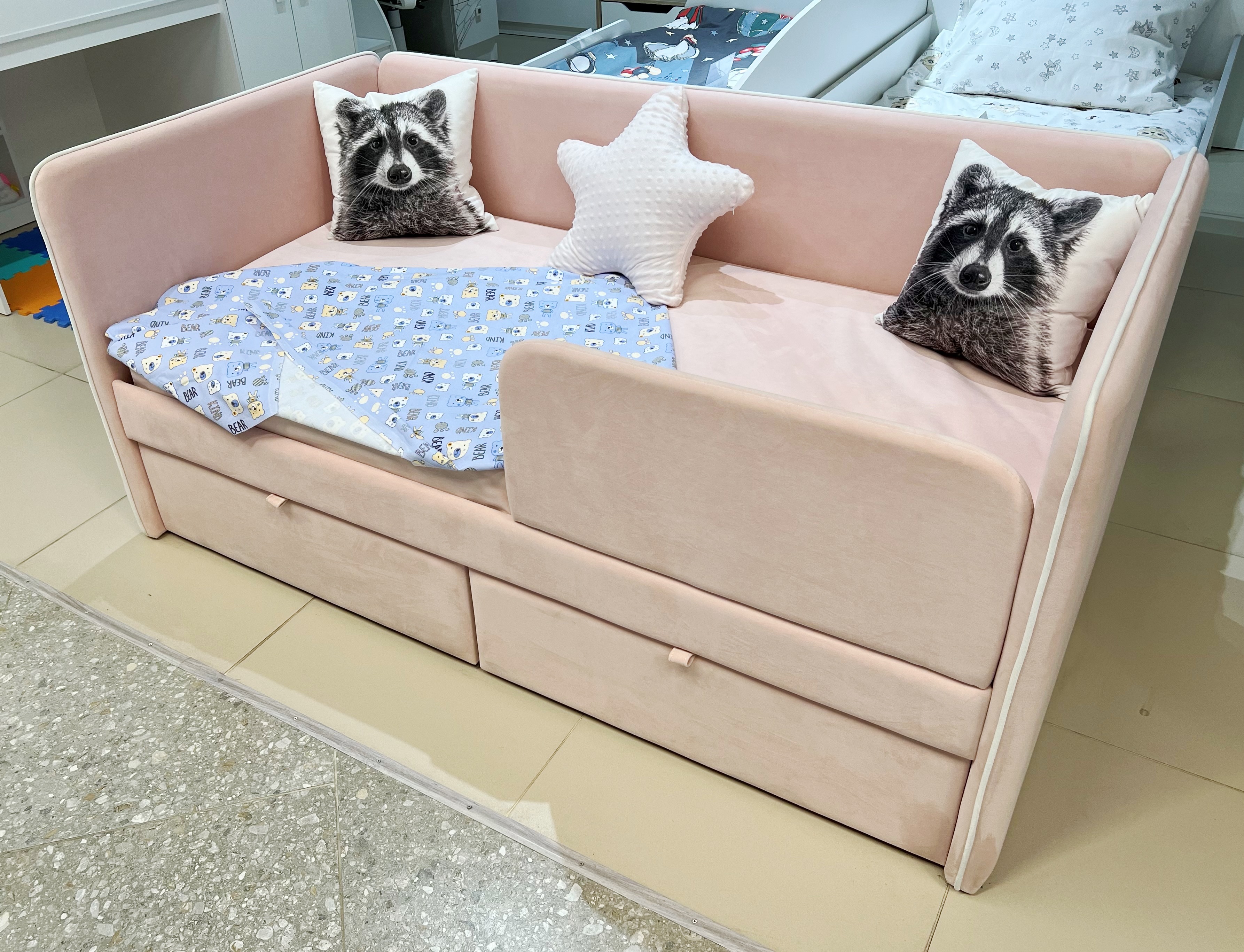 Кровать разработана с учетом требований к безопасности ребенка, сглаженные, мягкие углы, прочная конструкция и безопасные, гипоаллергенные материалы.
