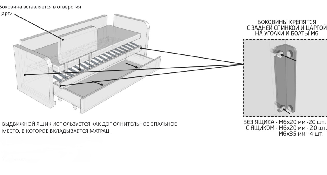 В стоимость входят: защитный универсальный бортик, выдвижной ящик |