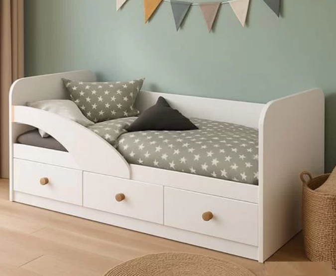 В кровать встроены три выдвижных ящика для белья и игрушек.