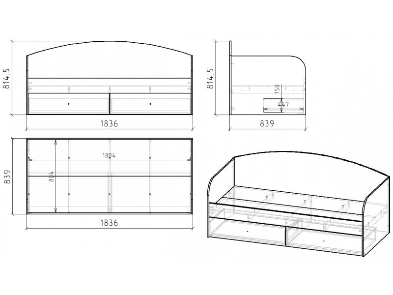 Габариты: ширина 1836 х высота 815 х глубина 840 мм