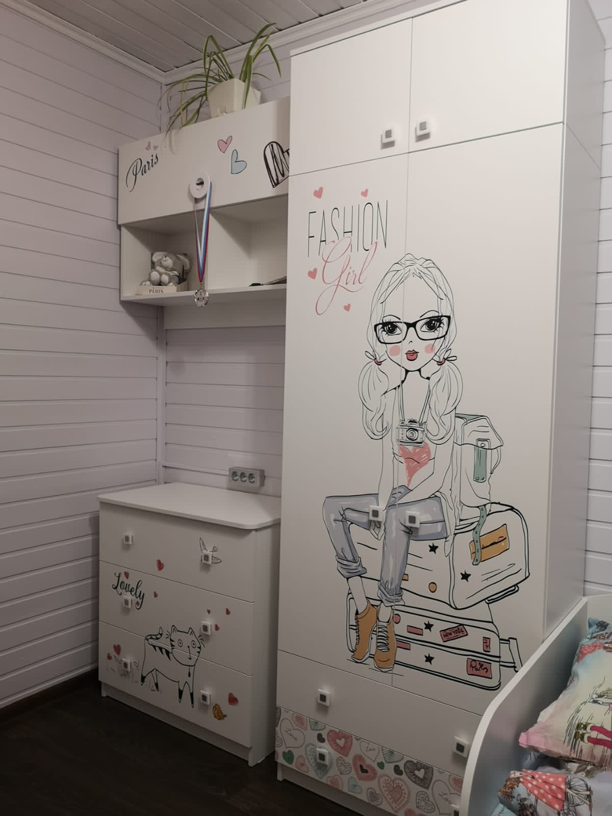 Полка выполнена из сертифицированного, качественного, экологически чистого российского ЛДСП в белом цвете + фотопечать.