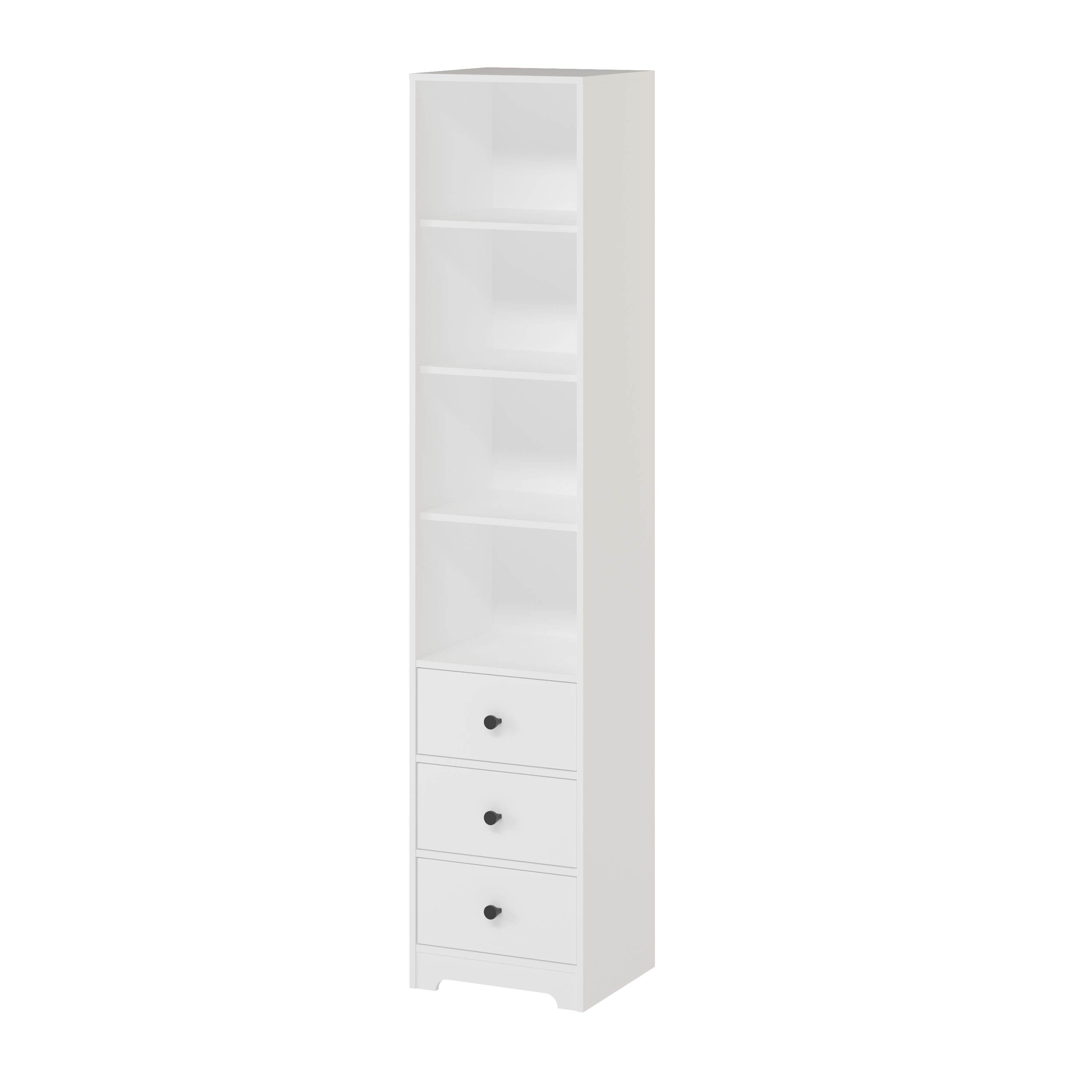 В пенал встроены три выдвижных ящика на направляющих скрытого монтажа с ДОВОДЧИКАМИ.