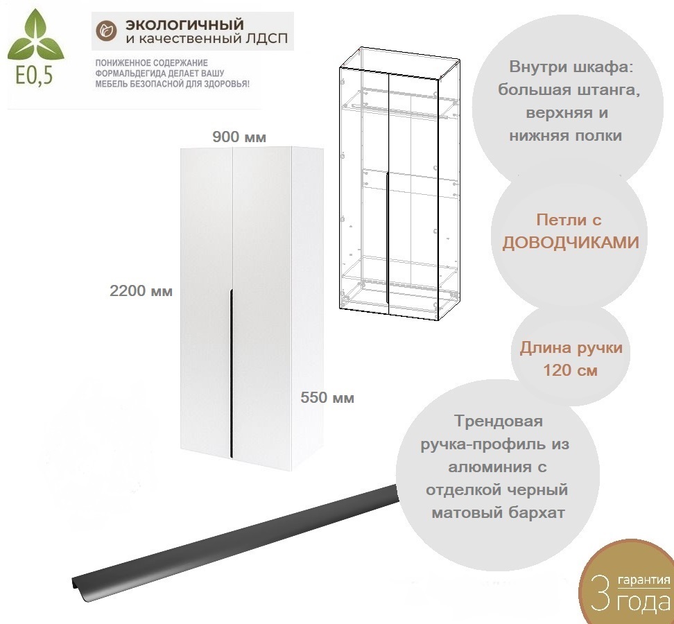 Трендовая ручка-профиль из алюминия с отделкой черный матовый бархат добавляет изделию стильную изюминку.