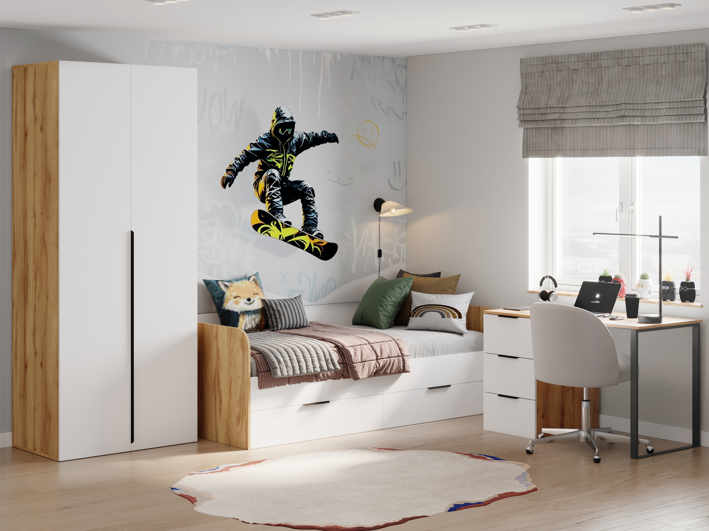 ЛДСП Е0,5. Толщина 16 мм. ДОСТУПНА В РАСЦВЕТКАХ: корпус дуб золотистый + фасады графит, корпус дуб золотистый + фасады белые, корпус белый + фасады графит, полностью белый или полностью велюр