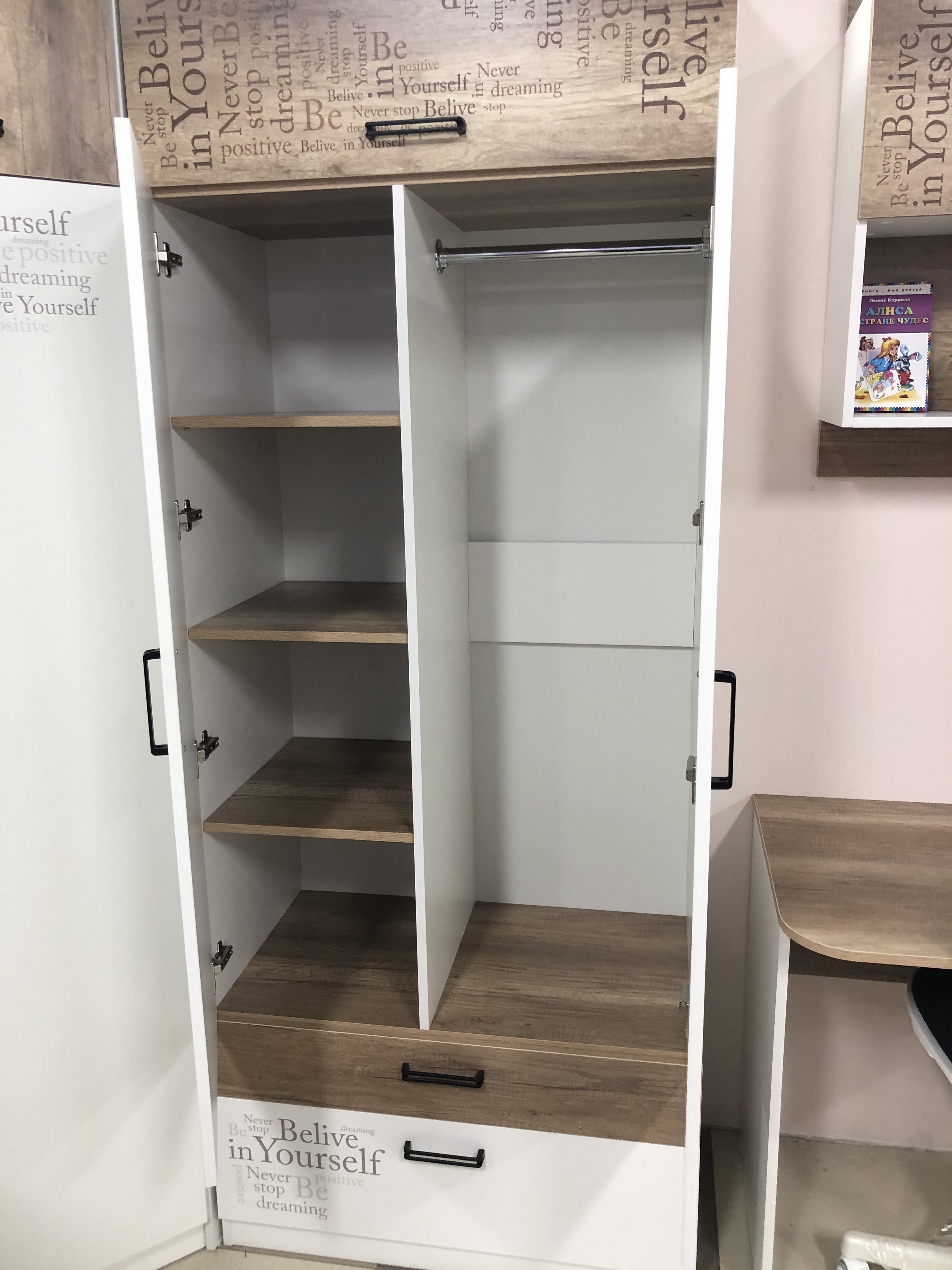 Идеально вписывается в детскую комнату, шкаф очень практичный и вместительный, по своим габаритам отлично подходит и для небольших комнат.