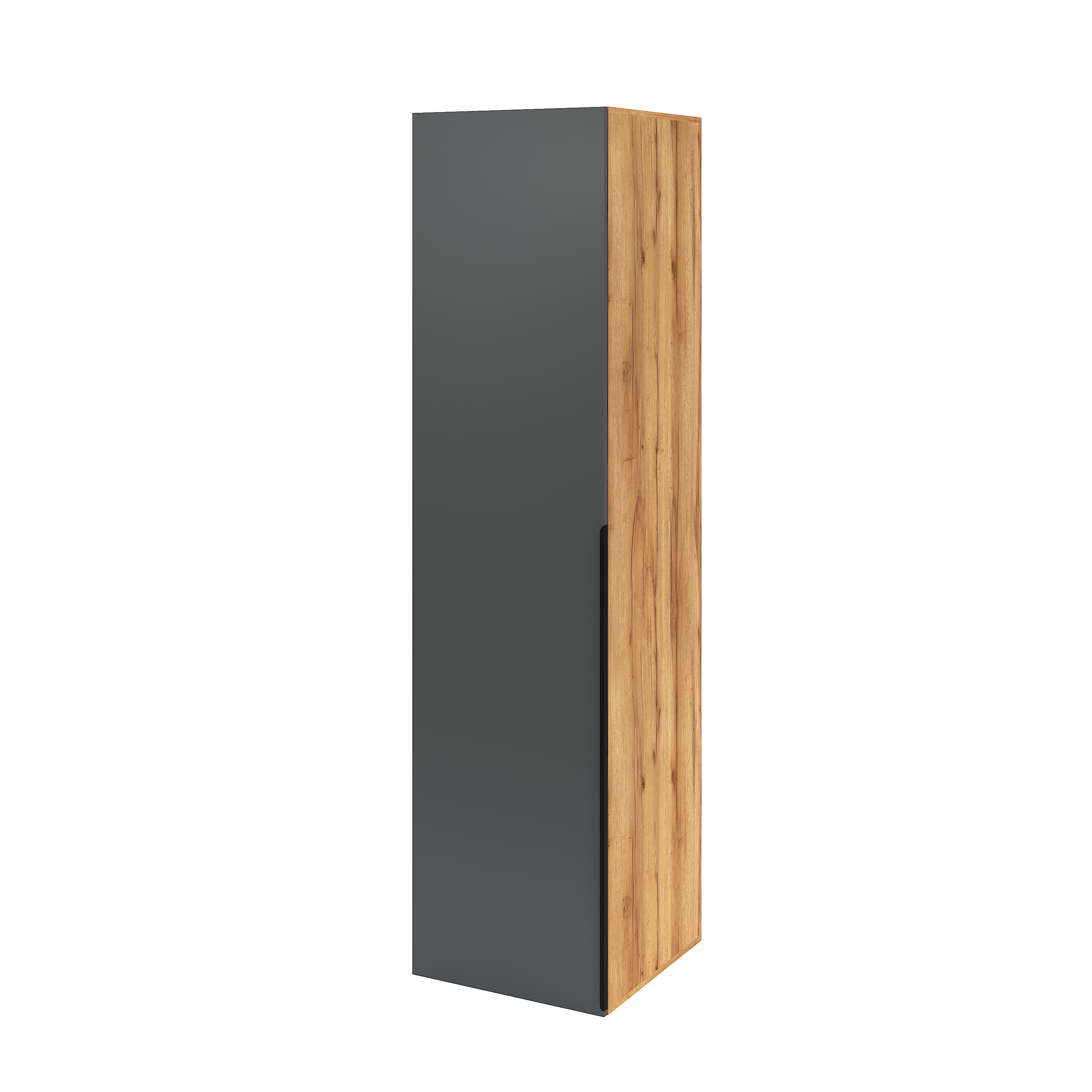 Натуральный декор дуб золотистый с выразительными полосами и следами от сучков прекрасно сочетается с однотонным декором графит.